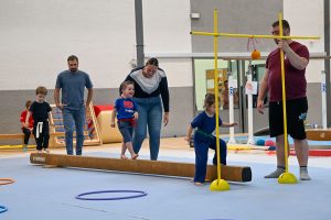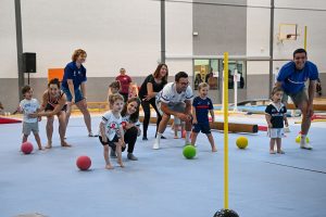Les cours de baby gym ont pour objectif d’acquérir une meilleure motricité par un développement de l’éveil corporel et de la coordination des mouvements et une approche de la vie en collectivité en développant la sociabilisation entre enfants et l’écoute des consignes par un adulte référent tout en partageant un moment de complicité avec ses parents.